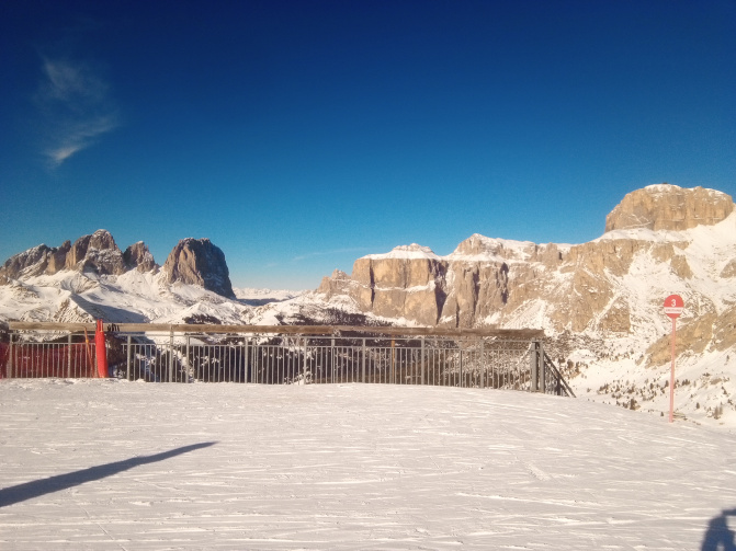 Kaiserwetter im Schnee im wundervollen Super Ski Dolomiti Skigebiet.