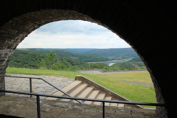 Mit dem gemieteten Audi TT durch die Eifel und das Bergische. Hier ein Blick von der Ordensburg Vogelsang auf den Rursee.